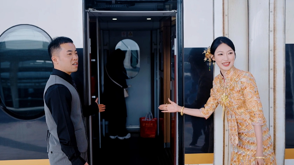 近日,安徽芜湖高铁站迎来一对特殊旅客,穿着龙凤褂的女生明艳动人,男生则是一身笔挺西装,帅气十足。“我们的婚车全球最贵!”两位选择用高铁接亲的新人,在个人社交平台分享了接亲时的场景,获得众多网友的关注和祝福。有网友调侃道:“1.8亿元的婚车,确实贵哈。”